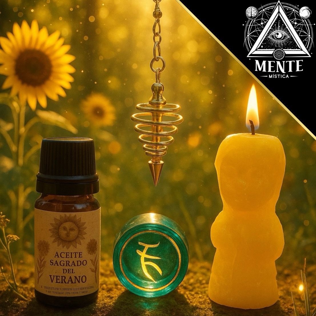 Este ritual combina el poder del fuego solar, el aceite consagrado, las sales vibracionales y el péndulo dorado, para alinearte con la verdad interior y limpiar tu campo energético, abriendo tu camino con decisión y luz.