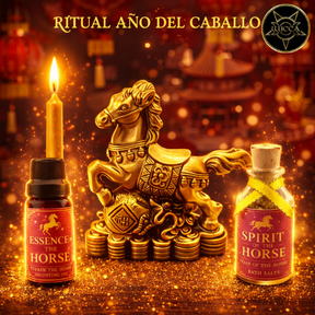 Incluye la Figura Exclusiva del Caballo de Fuego, diseñada únicamente por Wicca Escuela de Magia, como símbolo central del ritual. Este amuleto sagrado debe conservarse en un lugar alto de tu habitación para irradiar su fuerza durante todo el año.